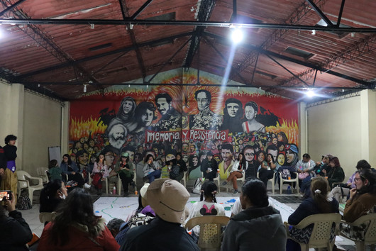 Finalmente visitamos las instalaciones de SINTRAENAL, donde aprendimos sobre las apuestas sindicales como forma de exigir derechos laborales y condiciones ambientales dignas en las megaempresas de la Sabana. También hicimos un ejercicio de cartografía del territorio que recorrimos, y finalmente, la Colectiva Mujeres de Facatativá nos guío en un ejercicio de creación de fanzines. Este formato fue el que les permitió recoger las reflexiones y enseñanzas del diplomado popular para mujeres, niños, y niñas, que realizaron el año pasado.